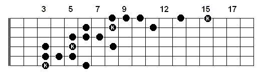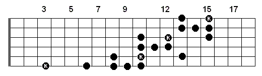 Suggested ascending 3 octave run shown in G (K = Key note)
